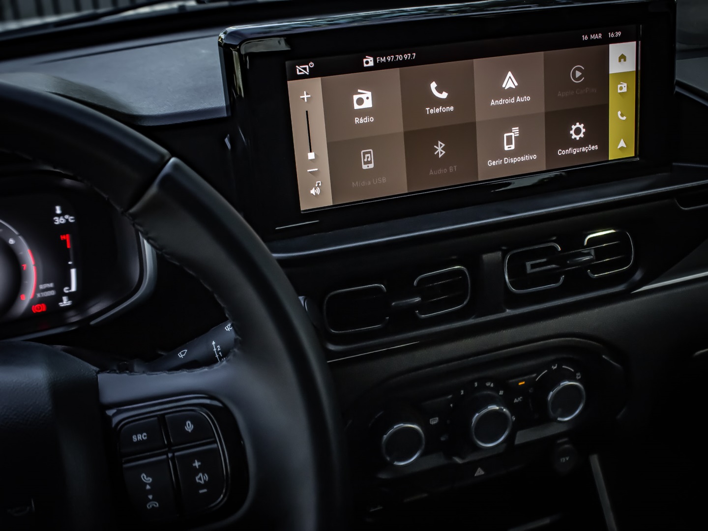 - Controle de som no volante
